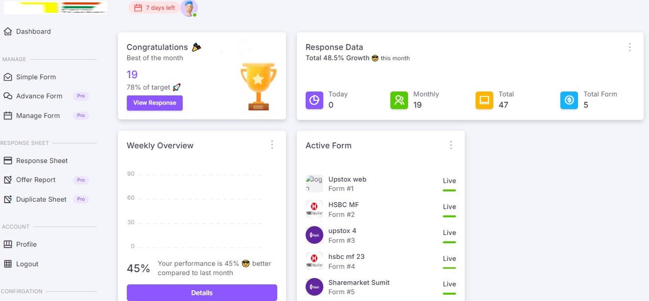 We provide form service for automating the Campaigns. In which we can help you to get user's data according to you. for Affiliate Networks, Advertisers, Agencies, E-commerce, and Media Buyers